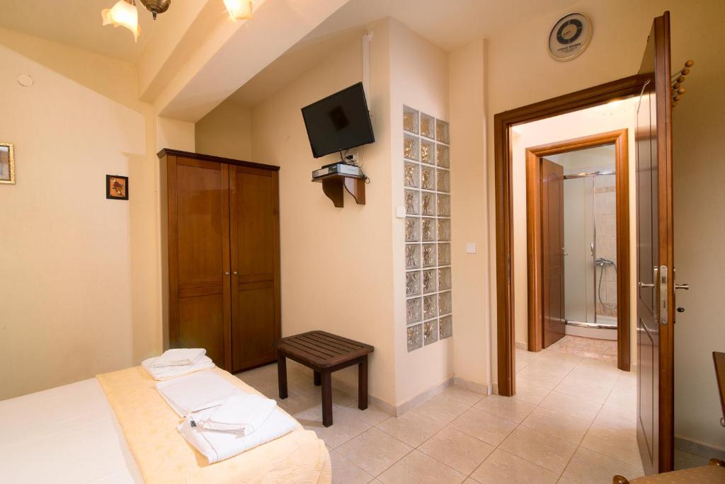 Τα τρίκλινα στούντιο παρέχουν επαρκή χώρο και μπορούν να φιλοξενήσουν έως και τρία άτομα. Διαθέτουν ένα διπλό κρεβάτι και είτε ένα μονό κρεβάτι είτε ένα καναπέ-κρεβάτι, κουζίνα και ιδιωτικό μπάνιο. Η κουζίνα είναι εξοπλισμένη με διάφορα μαγειρικά σκεύη. Το ιδιωτικό μπάνιο διαθέτει ντους και είναι εφοδιασμένο με διάφορα προϊόντα μπάνιου. Τέλος, υπάρχει άμεση πρόσβαση σε επιπλωμένο μπαλκόνι/βεράντα με υπέροχη θέα